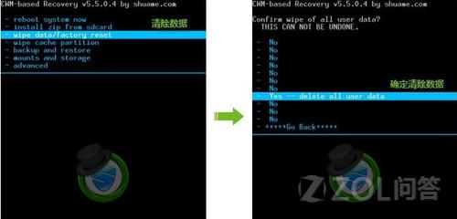 wipe data/factory reset 清除data分区并恢复出厂设置