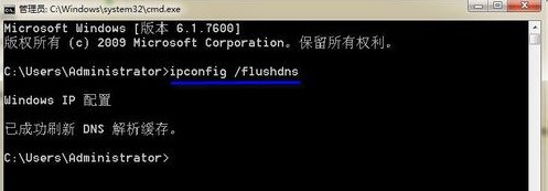 2、在命令行窗口输入“ipconfig /flushdns”回车(按enter键),刷新本地的dns缓存数据。如下图: