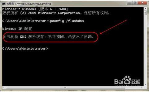 3、若出现下图所示的“无法刷新dns解析缓存”的错误,一般是本地的“dns client”服务没有正常启动。