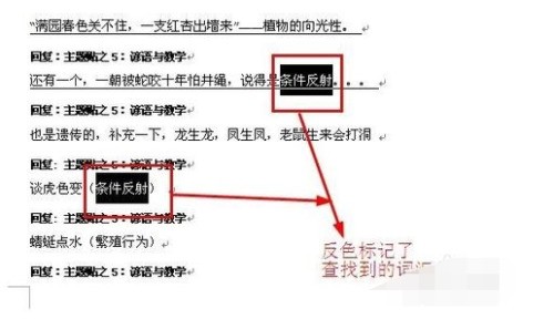 比如有以下这篇文档:如果要将全篇文档中的“条件反射”这个词都找出来,并对找出了的“条件反射”这个词都带上标记。