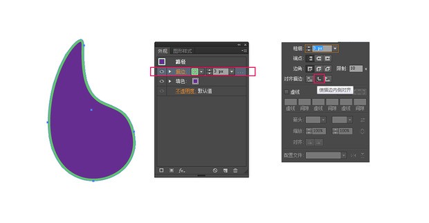 选中图形后,打开外观面板,在面板中将描边改为绿色3px,并将“对齐描边”调整为“使描边内侧对齐”。