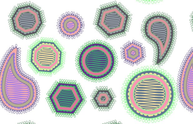 今天我们要学习的就是如何利用AI软件里的外观、散点画笔和重新着色图稿来制作出这类繁复多样的美丽图案。