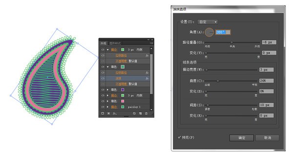 这时,我们的paisley纹样就做好了。选中图形后,点击添加新样式,保存为paisley新样式。这时,你就能使用这个样式做出成千上万个纹样图案了。