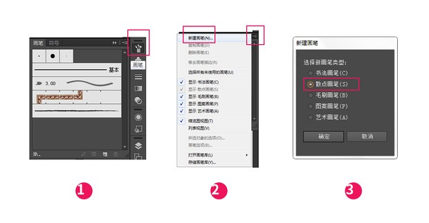 点击确认后,第一个散点画笔制作完成。选中该散点话知令龙顶针画笔,在画布上用画笔工具就能勾勒出你想要的图案。设置描边颜色就能变化出相应的色彩。