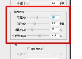 6、主要是将边缘调整得更加平滑,进行下羽化。如图,在图片中中圈住的调整边缘设置内,进行合适的调整,这个没有一个固定的值,觉得图片调整的很细腻了,就进行确认保存。