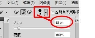 3、然后将工具调整为合适的大小,根据不同图片大小来进行不同的设置。以便于更好地勾出图片的轮廓,也可以随实际操作随时调节大小。
