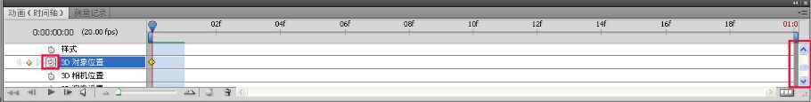 五、点右边“3D对象位置”前的小钟(见上图左边红色方框处),出现第一个关键帧(在时间线中部会出现菱形)。