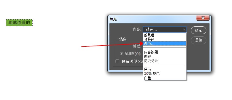 填充前景色/背景色,或者自己选个颜色即可。填充前景色alt+del,填充背景色ctrl+del,需要调出填充属性卡,则按shift+F5