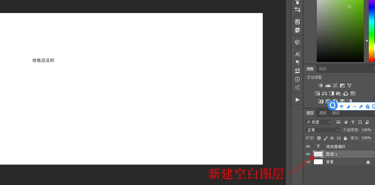 选择文本图层下面的图层,这里是“背景”层,按ctrl+shift+alt+N新建即可得到图层1。