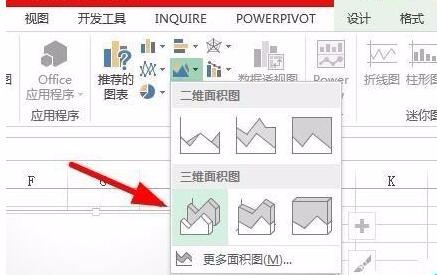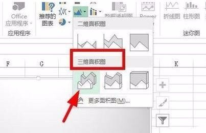 在图示的案例中,选择“三维面积图”,在图示的箭头处单击一下三维图即可。