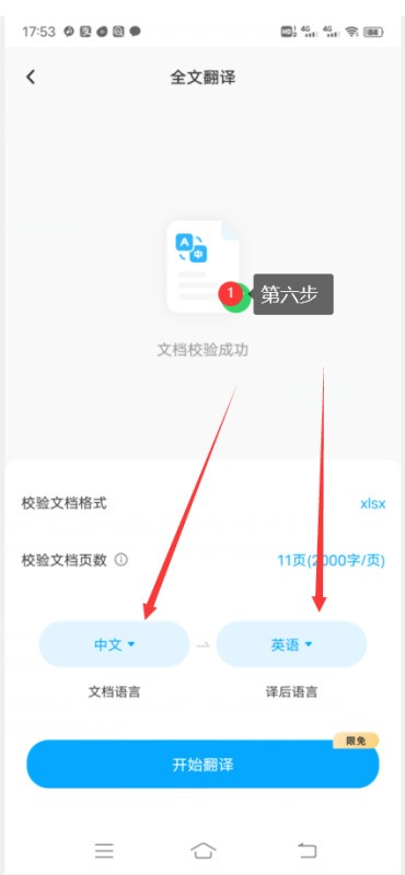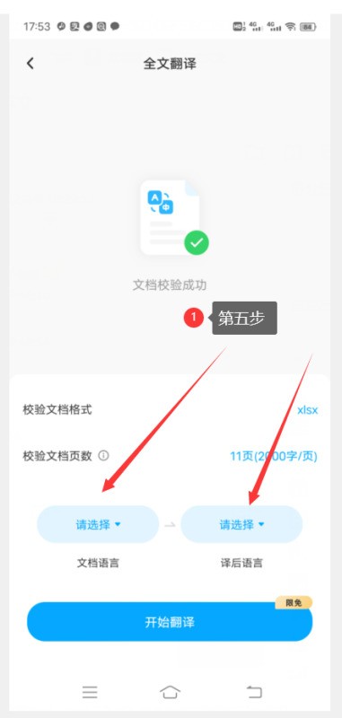 第五步、选择好文档之后就会出现,需要设置翻译的语言,以及要翻译成的语言,如下图所示: