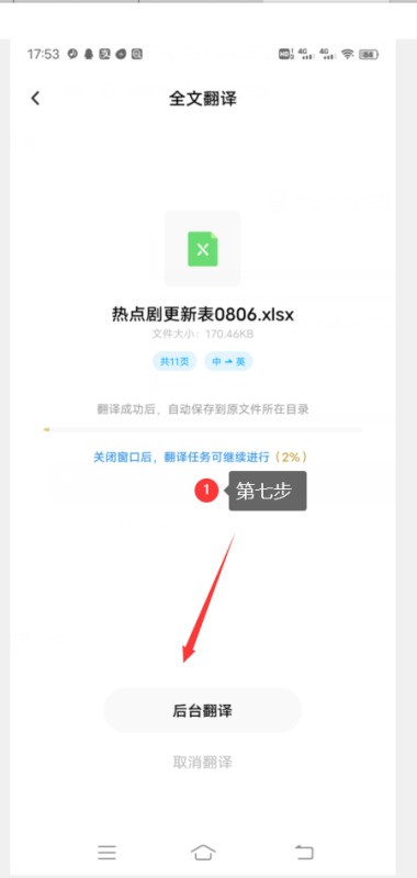 第七步、等待翻译,如果翻译的文档比较慢可以选择后台曲无阶法乡扩垂底刻翻译,会在后台自动翻译,促杂唱宗益消示想慢持你可以去做别的事,如下图所示: