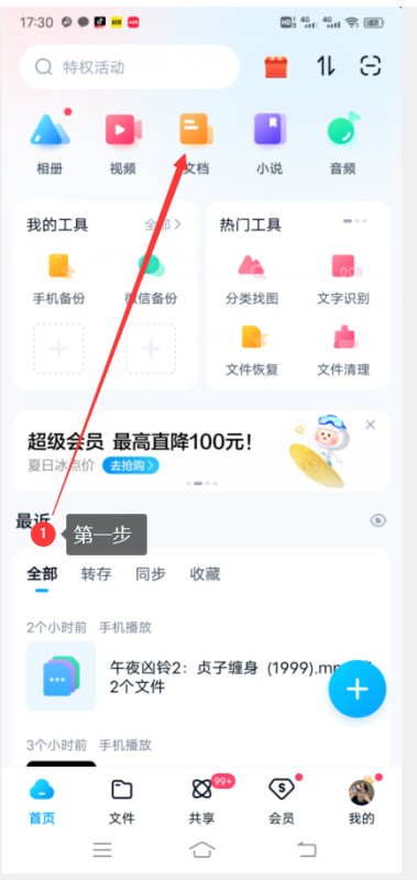 第一步、首先打开百度网盘主界面找到文档,如下图: