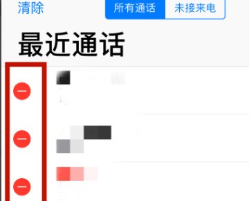 3、然后可以点击左边红色的减号来删除不需要的通话记录,这样可以减少手机内存。