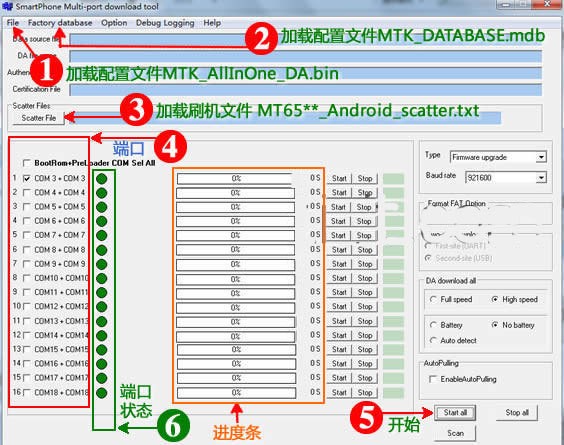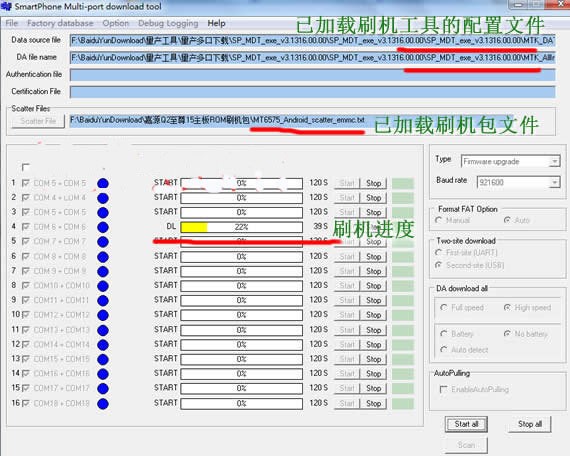 1、点击 Star all 启动刷机【上图中所示位置5】;