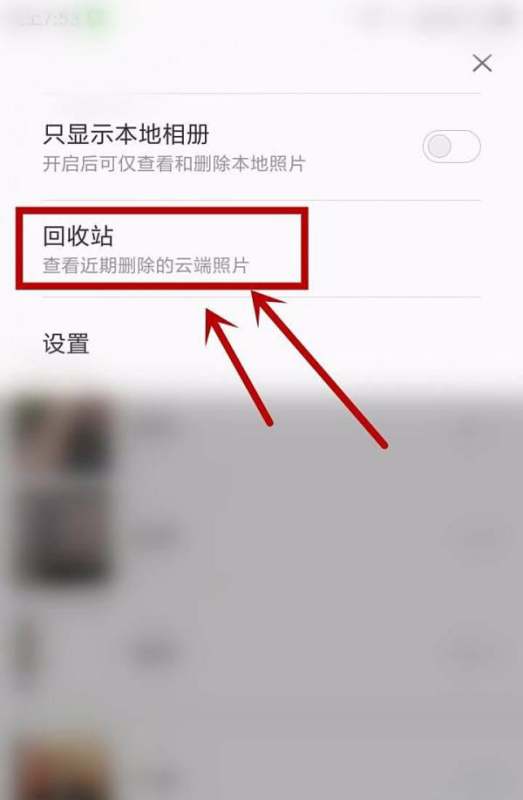 步骤4:进入回收站在弹出的菜单中选择【回收站】选项,进入已删除照片列表。