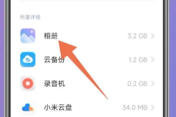 4、进入下一个页面之后,在用量详情页面中选择【相册】。