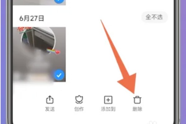 5、跳转到照片页面之后,长按图片,选择需要删除的【多张图片】,点击页面底部位置的【删除】。