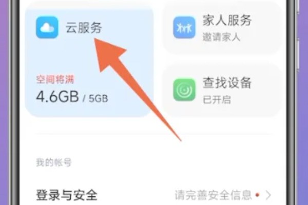 2、把小米帐号页面打开之后,点击页面中的【云服务】。