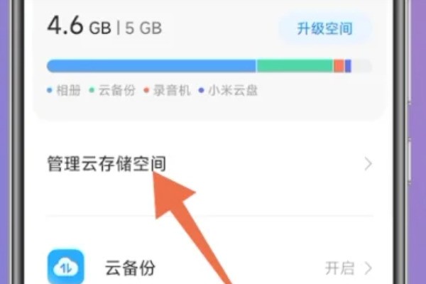 3、打开小米云服务界面后,选择【管理云存储空间】并点击。