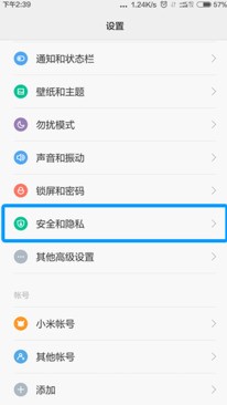 进入设置后往下拉,然后找到安全与隐私按钮,点击并进入
