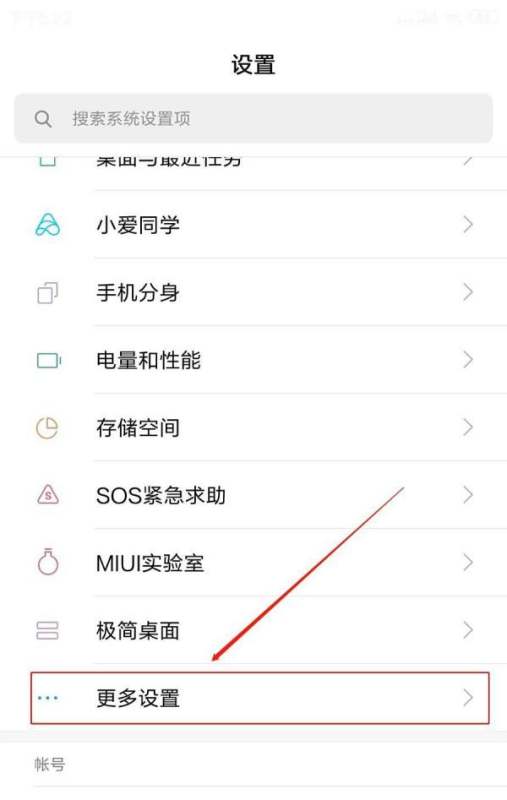 进入更多设置:在设置界面中,向下滚动并选择“更多设置”选项。