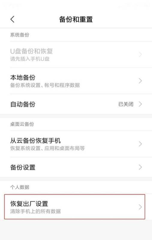 确认操作:系统会弹出提示,告知恢复出厂设置将清除手机的所有数据,包括应用、照片、联系人等。