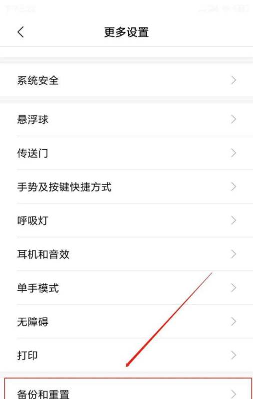 选择重置与备份:在更多设置界面的底部,找到并点击“重置与备份”。