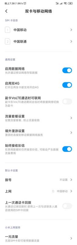 小米手机更换卡一和卡二网络的方法如下: