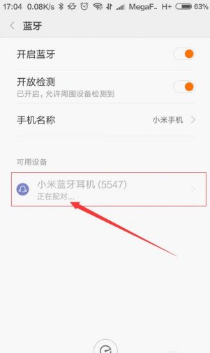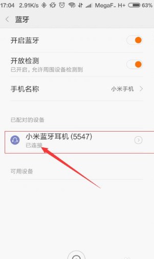 工具/原料:红米note4、miui8.0、小米蓝牙5547耳机。