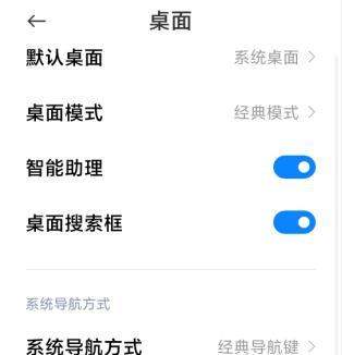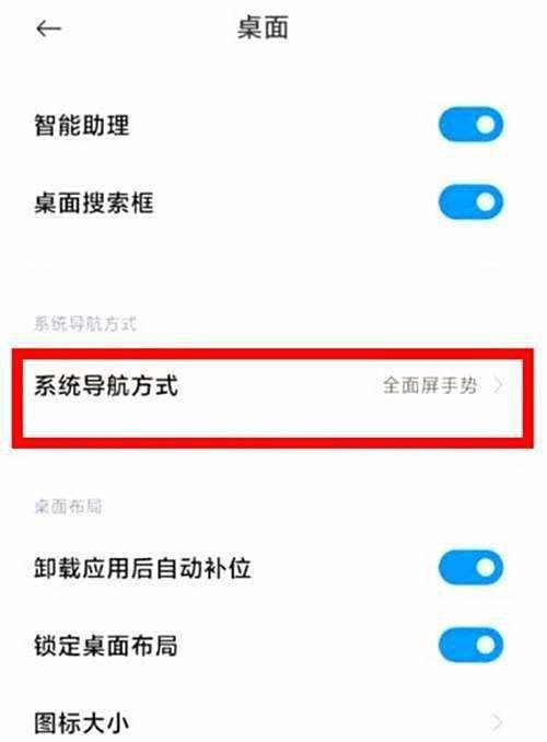 第二步:进入系统导航方式设置在桌面设置菜单中,找到系统导航方式选项并点击进入。此选项通常位于“桌面设置”或“系统与更新”分类下,具体位置可能因MIUI版本略有差异。