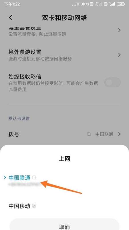 选择目标流量卡:在弹出的流量卡列表中,点击需要切换的流量卡(如卡1或卡2),系统会自动保存设置。