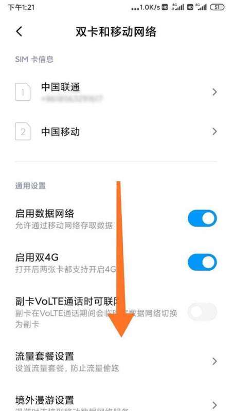 小米双卡双待手机切换流量卡的方法如下: