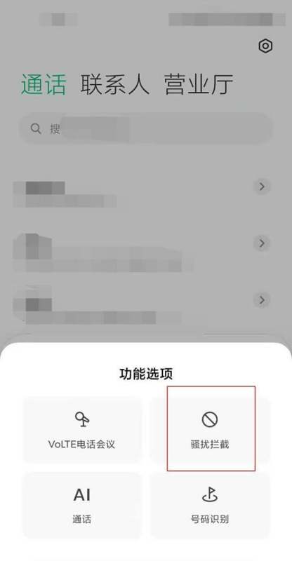 选择骚扰拦截功能:在菜单中点击<骚扰拦截>选项,进入拦截设置页面。