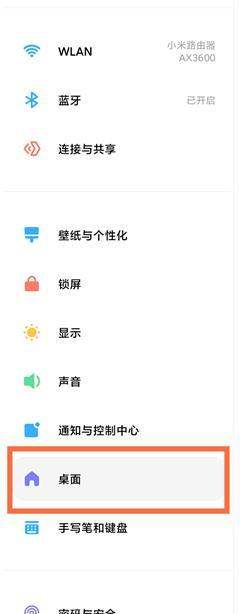 在设置菜单中,向下滑动屏幕,找到“桌面”选项并点击进入。此选项负责管理桌面布局、图标排列及搜索框等显示功能。