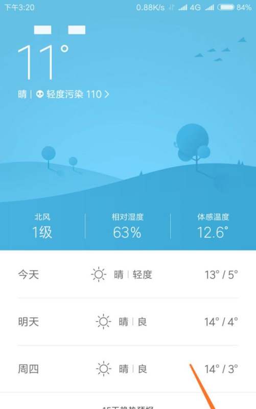 打开设置入口:在天气界面右下角点击图标(通常为三个点或齿轮形状)。