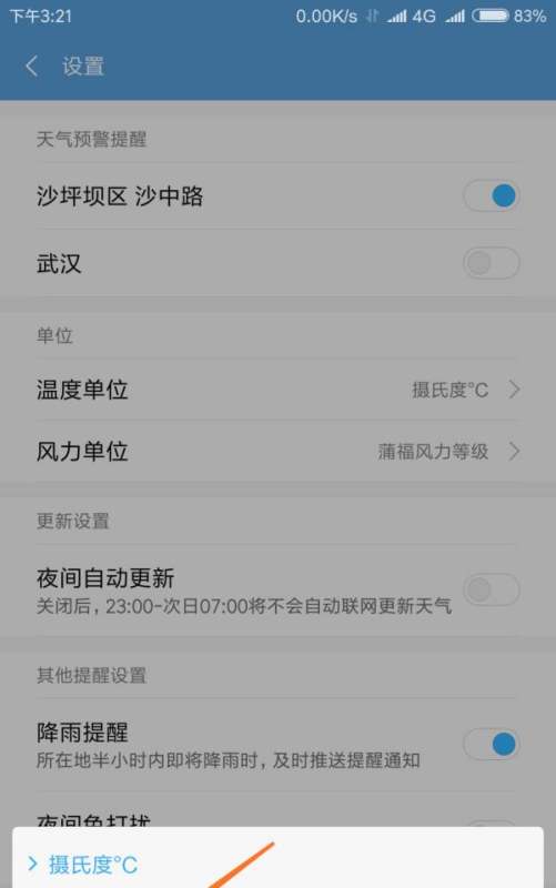 完成设置:返回天气界面后,温度显示将自动切换为所选单位。