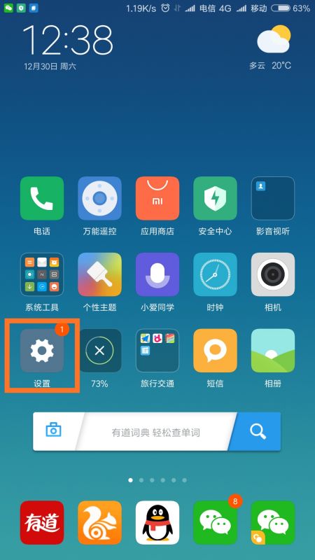 1,打开手机设置