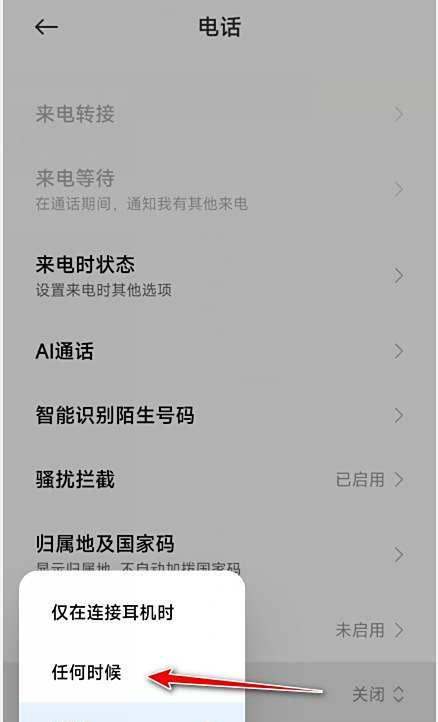 在【语音播报】设置页中,找到【来电播报】选项并点击。系统会弹出场景选择菜单,确认选择【来电时】作为触发条件。