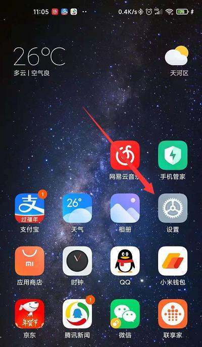 进入手机设置打开小米10主界面,点击“设置”图标进入系统设置菜单。