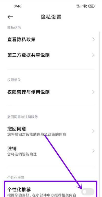 步骤5:关闭个性化推荐在主页设置中找到【个性化推荐】选项,其右侧通常有一个蓝色开关按钮,触击该按钮使其变为灰色,即表示已成功关闭个性化推荐功能。