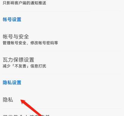 第二步:选择隐私选项在设置界面中,向下滑动找到【隐私】选项,点击进入隐私设置页面。