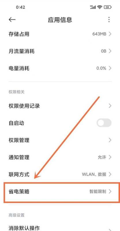调整省电策略:在应用信息页面中,找到“省电策略”选项并点击,系统会显示当前应用的电源管理设置。