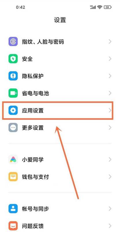 点击应用设置:在设置页面中,滑动屏幕找到“应用设置”选项,点击进入应用管理配置界面。