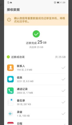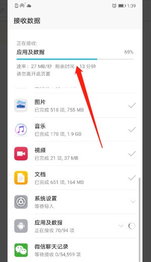 8、等待完成就可以了。根据数据量时间会有快慢,完成之后就会发现新手机用得和旧手机一样习惯了。
