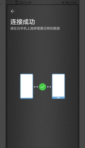 5、用旧手机扫描二维码,连接成功后,会弹出连接成功界面,