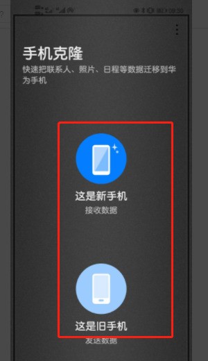 3、新手机也是同样操作打开手机克隆,然后分别选择新手机作接受方,旧手机作为发送方,点击这是新手机进入后,
