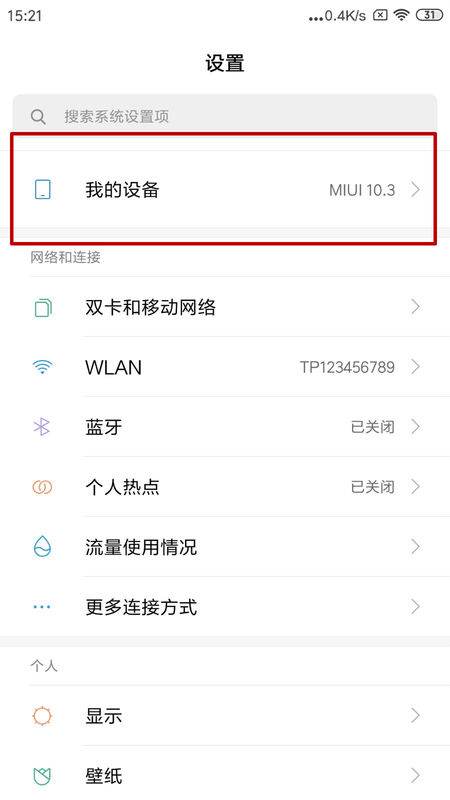 3、在我的设备界面,找到“MIUI版本”选项,打开进入下一步。