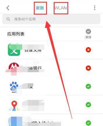 若需禁用数据流量,在数据选项下找到目标软件,取消勾选对应权限即可。