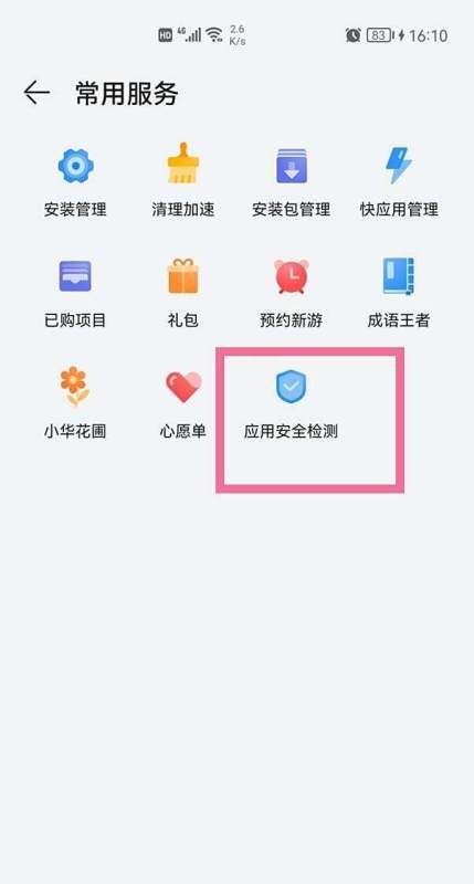 定位应用安全检测选项:在服务列表中,通过上下滑动查找“应用安全检测”选项,找到后点击进入。